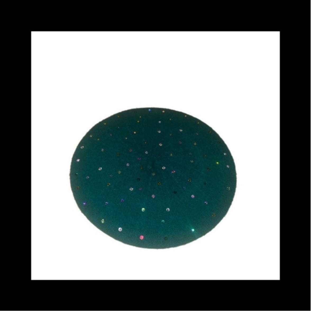 Beret Hat In Green With Green Tones & Luxe Crystals