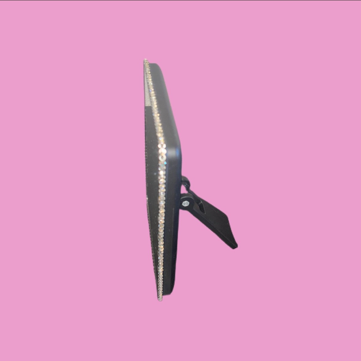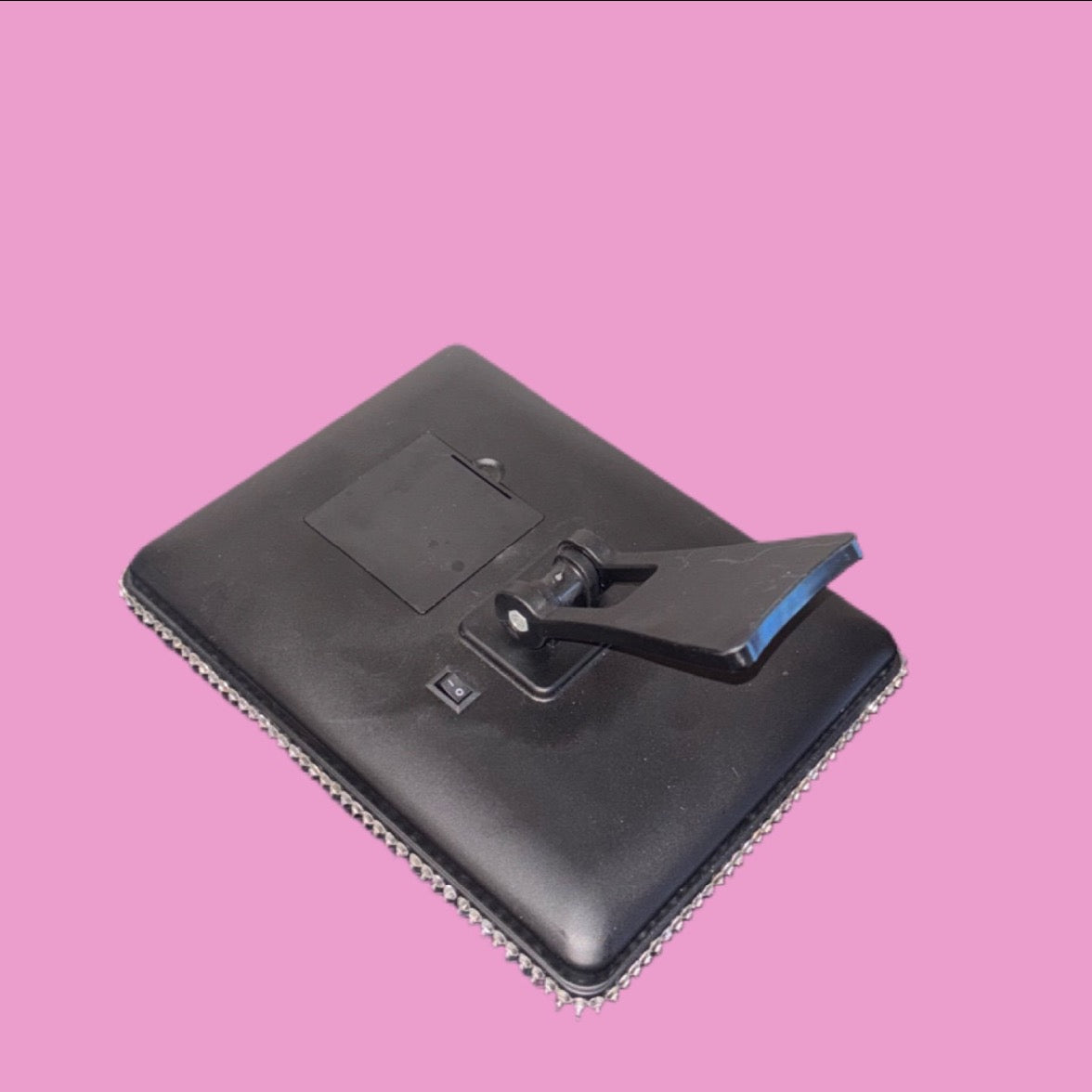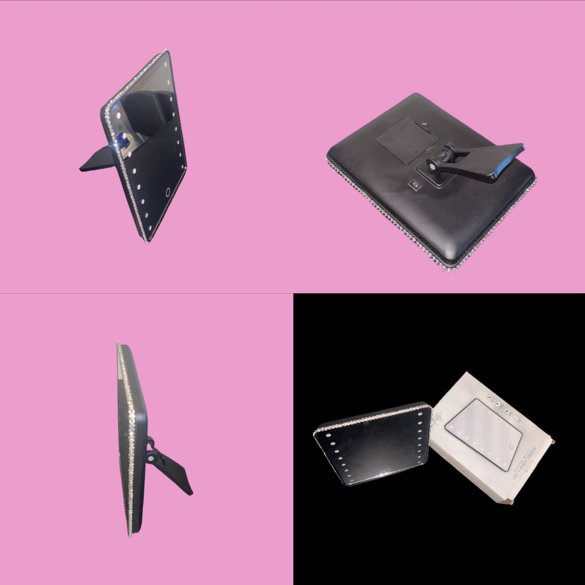 Black LED Light up free standing mirror with sparkly luxe crystal trim,