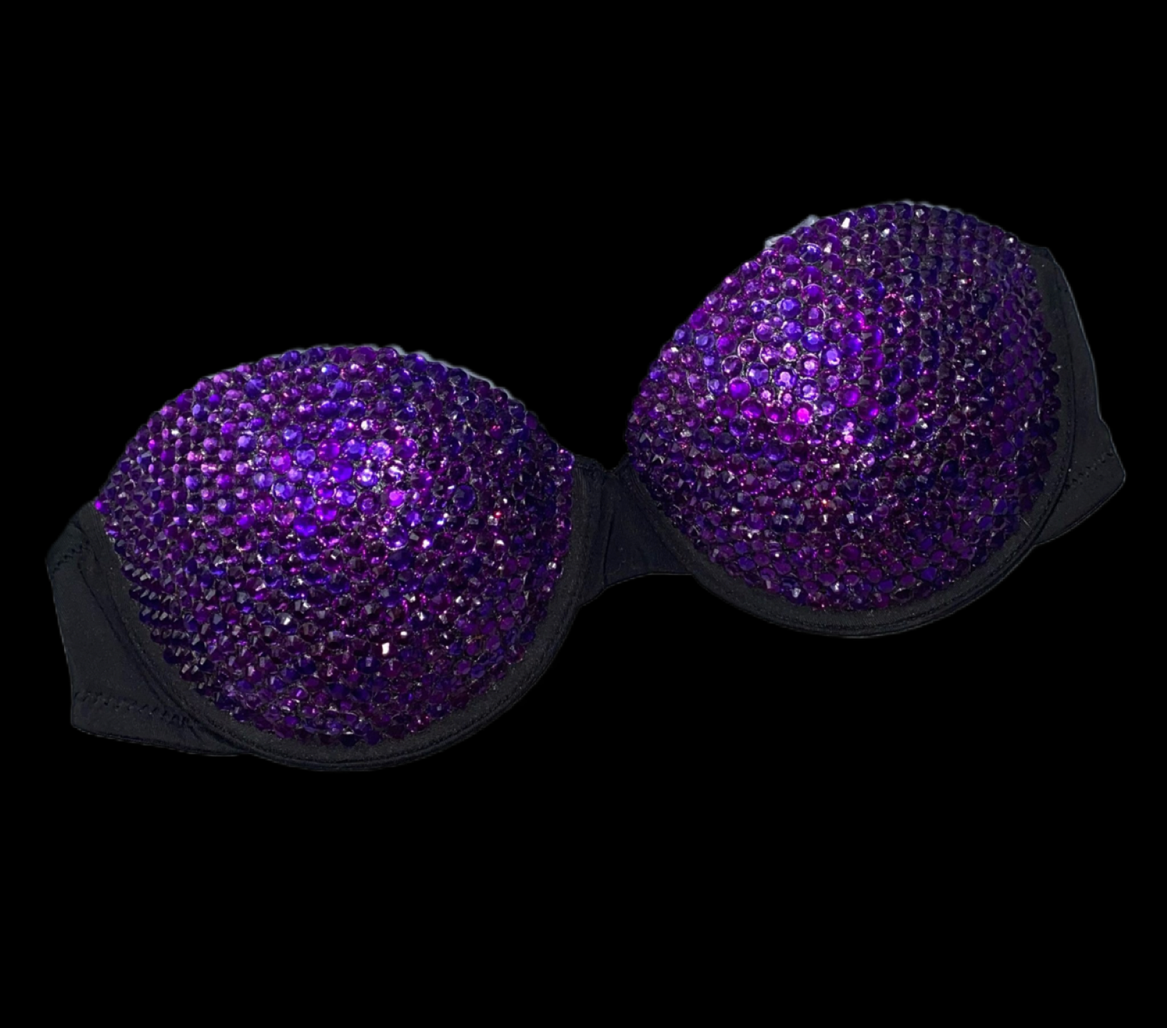 Elevate your style with Diamond Crystal Strapless Bra. Featuring a stunning crystal cadbury purple flame colour changing diamond design, Say goodbye to boring bras and add some sparkle to your wardrobe with our one-of-a-kind piece.