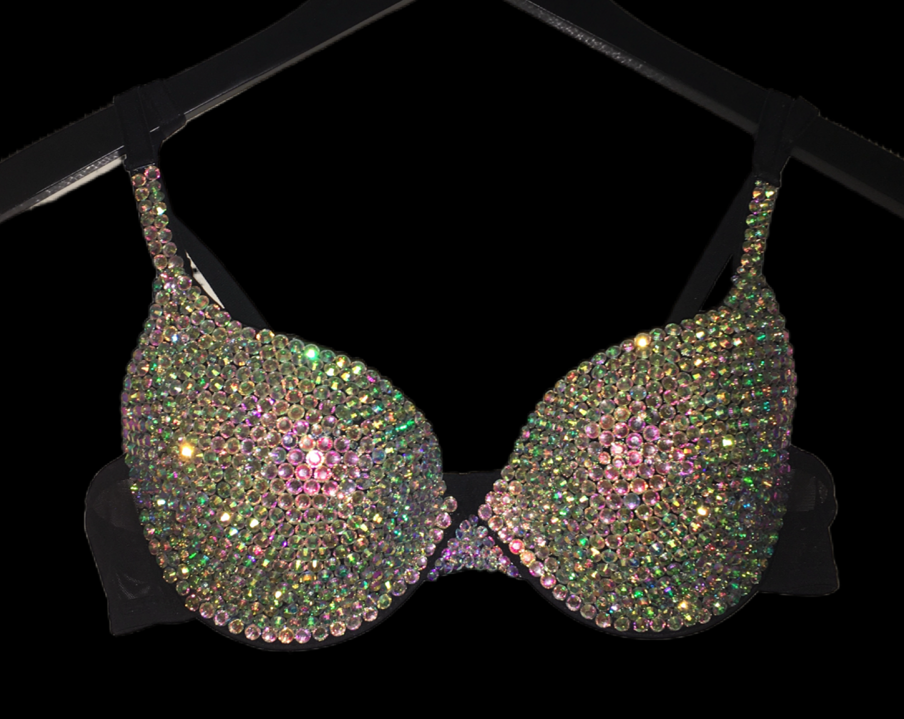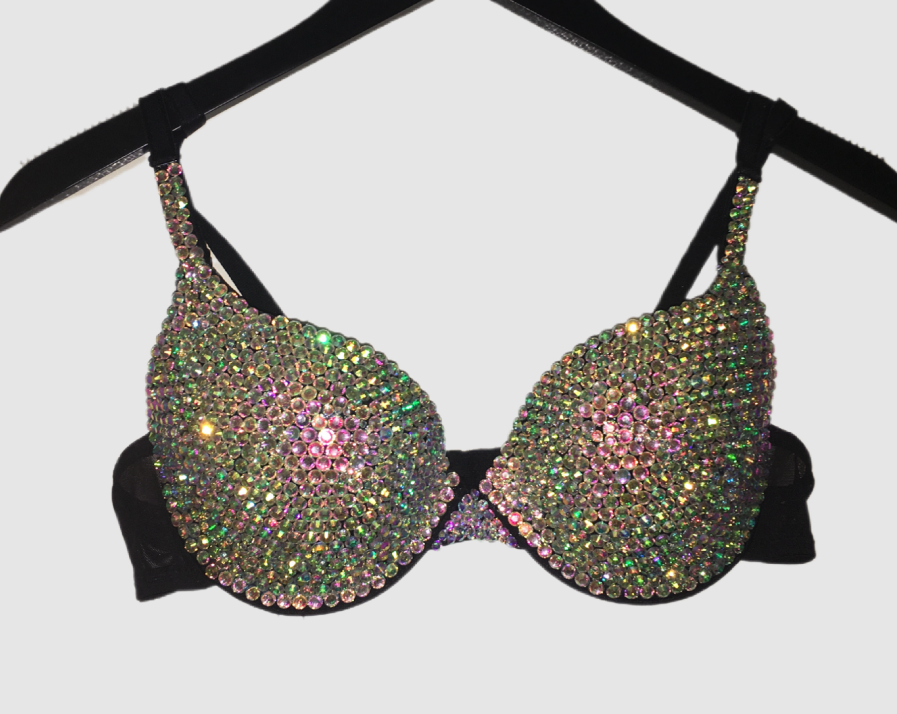 Elevate your style with Crystal AB Iridescent T-Shirt Bra. Featuring a stunning crystal AB iridescent design,  Say goodbye to boring bras and add some sparkle to your wardrobe with our one-of-a-kind piece.