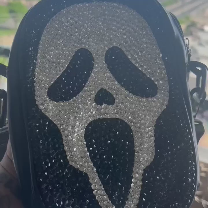 Iconic Ghost Face design crystal bag, Perfect for any horror fans that love some bling!