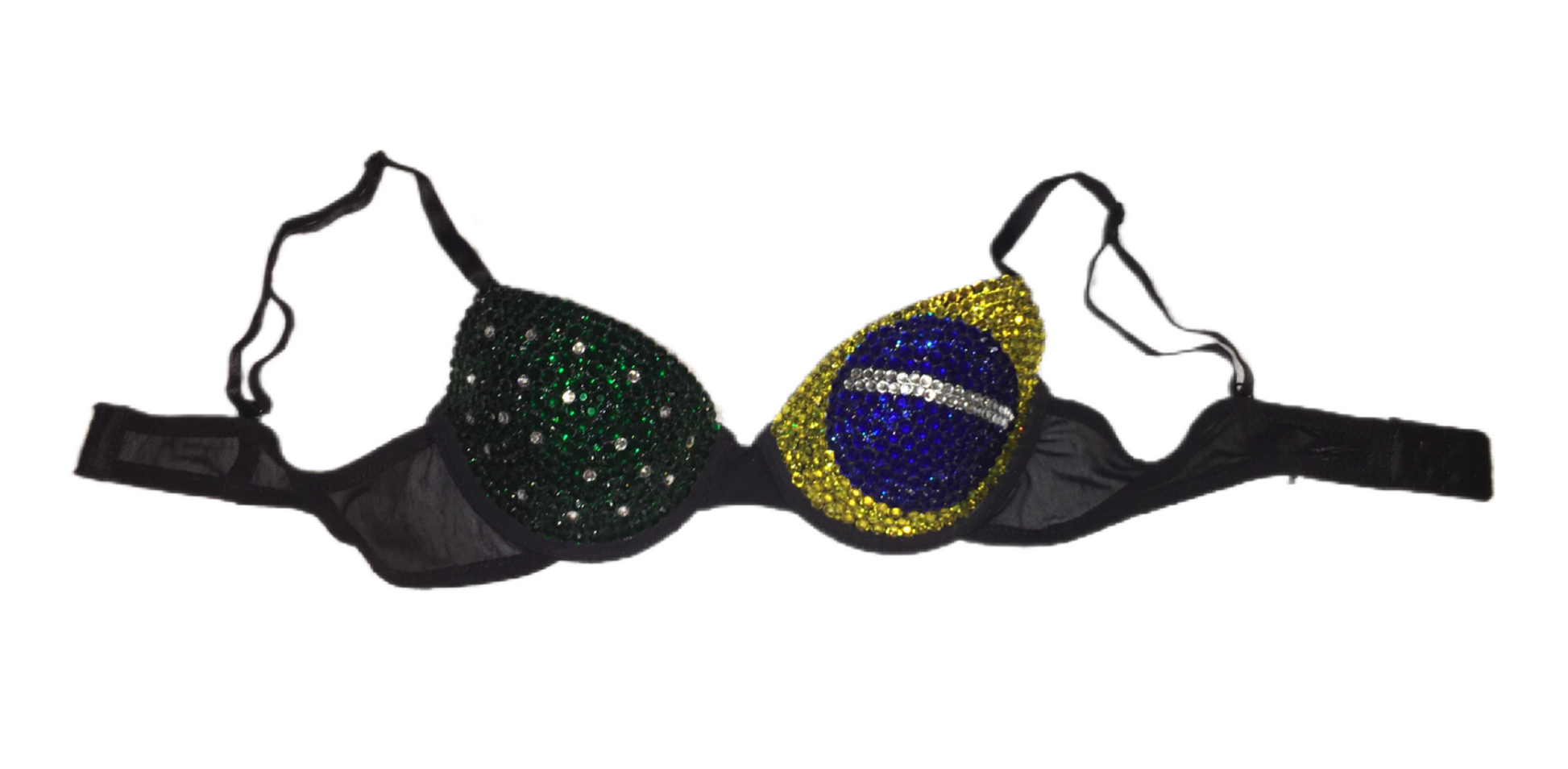 Represent in style with Diamond Crystal flag T-Shirt Bra. Featuring a stunning brazil theme crystal design, Say goodbye to boring bras and add some sparkle to your wardrobe with our one-of-a-kind piece.