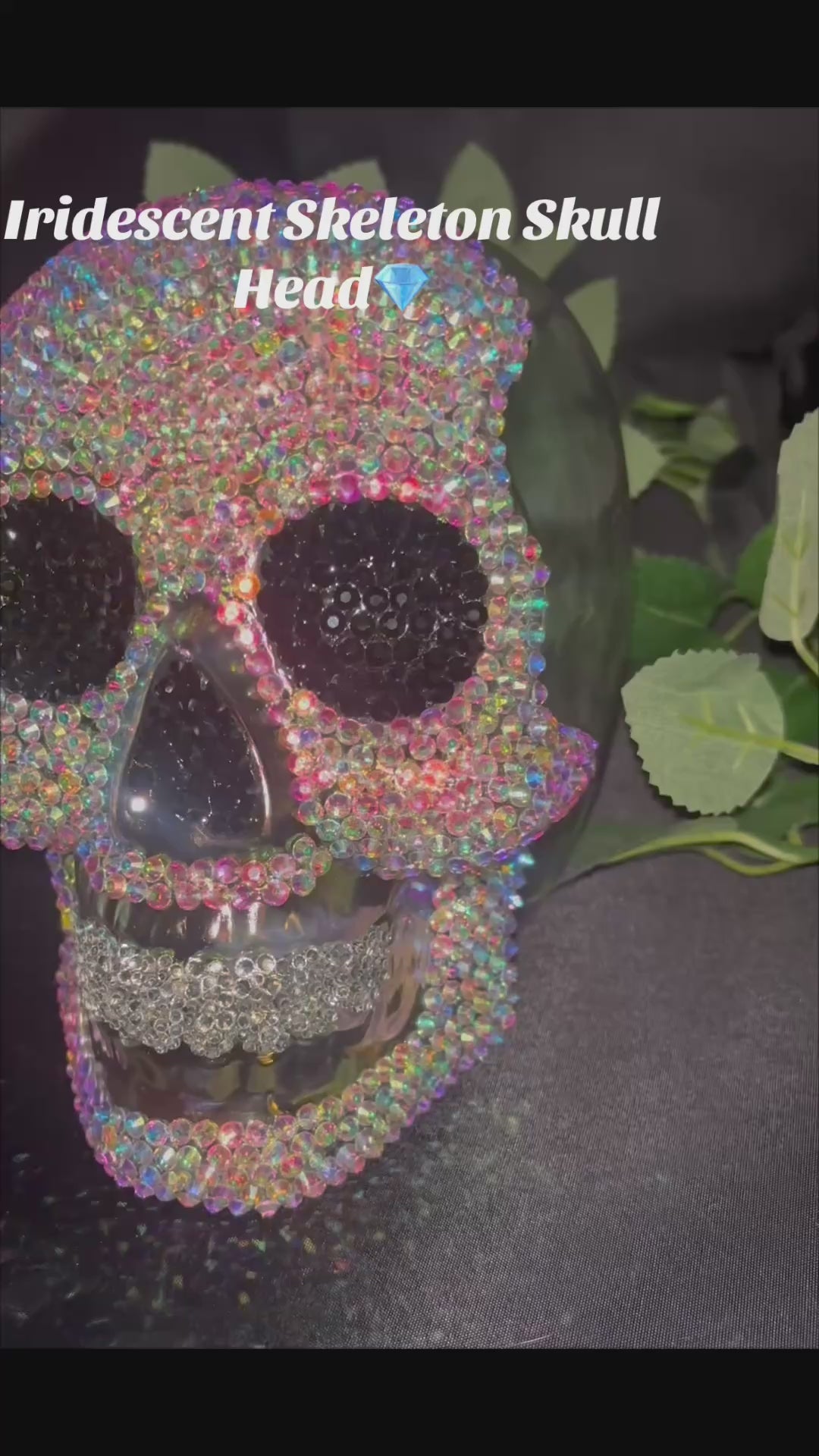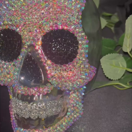 Iridescent Skeleton Skull Head adorned with Crystal ab & Jet Black crystals,