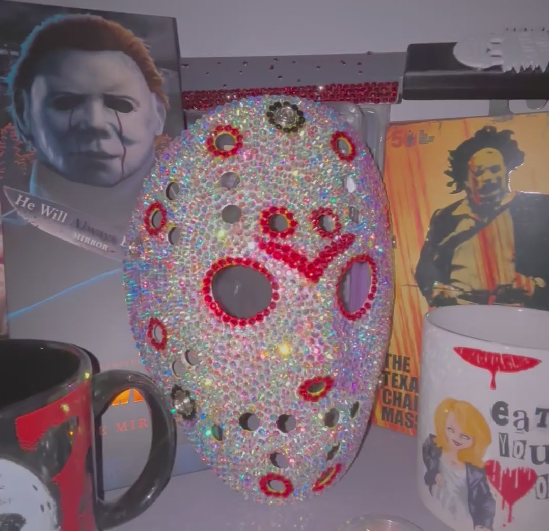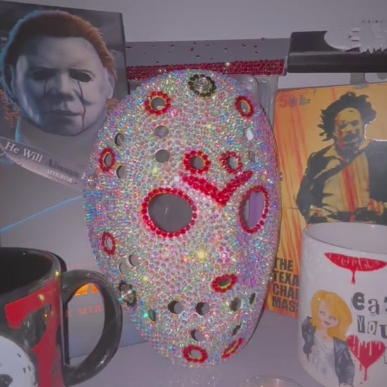 Discover the ultimate horror experience with our Crystal Jason Mask. Made with real luxe crystals, A must-have for any horror fan. Don't miss out on this unique and high-quality sparkly piece.