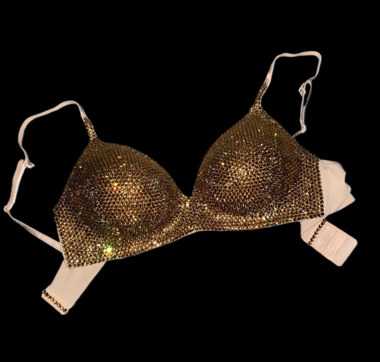 Elevate your style with Luxe Crystal Diamonds Wireless Bra. Featuring a stunning crystal lt gold colorado topaz gold diamond design, Say goodbye to boring bras and add some sparkle to your wardrobe with our one-of-a-kind piece.