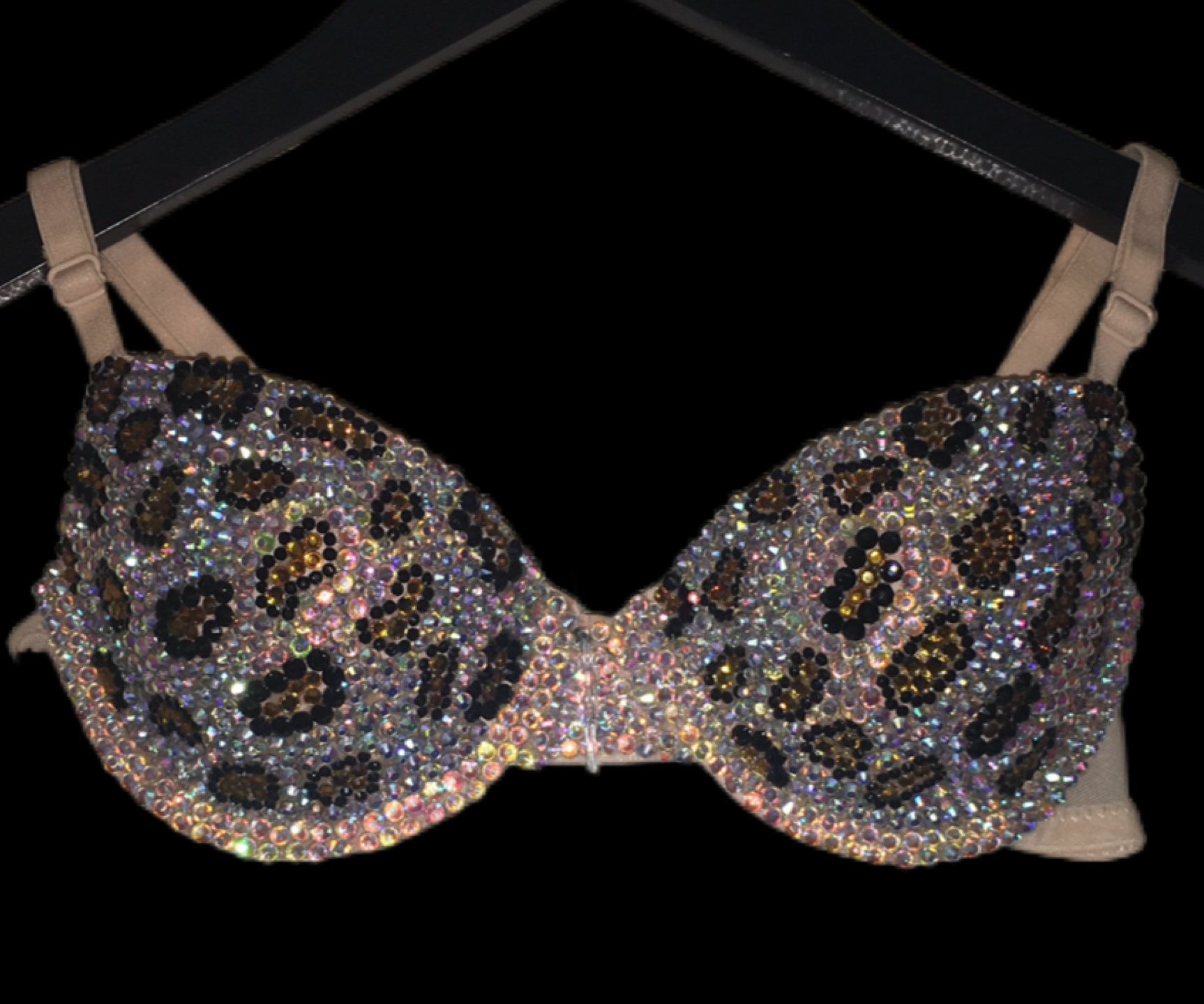 Elevate your wardrobe with our Luxe Crystal Leopard Print Design T-Shirt Bra. Adorned with a dazzling crystal leopard pattern, this unique piece adds a touch of glamour to any outfit. Add a little sparkle into your lingerie collection.