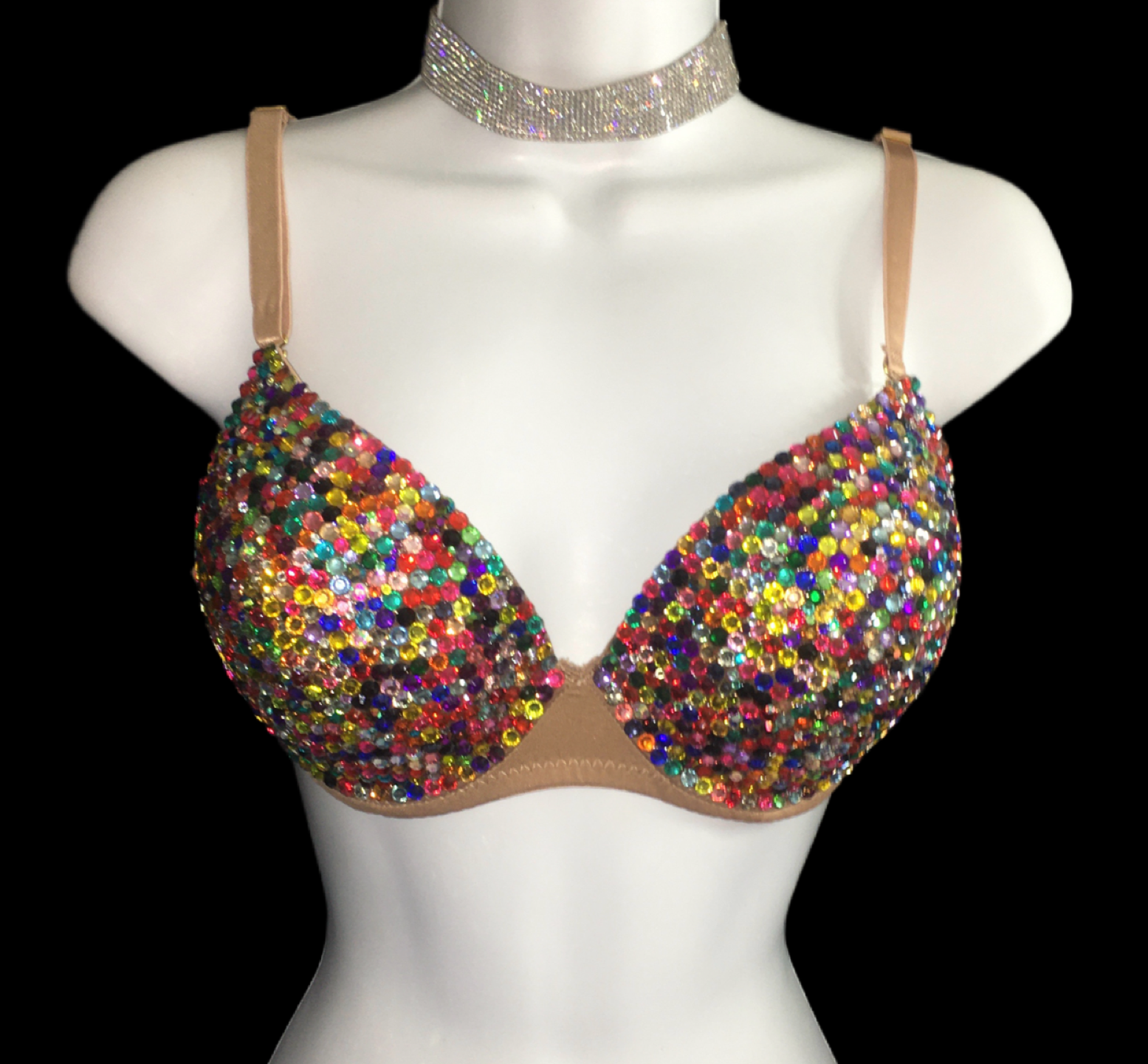 Elevate your style with this multicolour T-Shirt Bra. Featuring a stunning mix of hundreds of colours design, Say goodbye to boring bras and add some sparkle to your wardrobe with our one-of-a-kind piece.