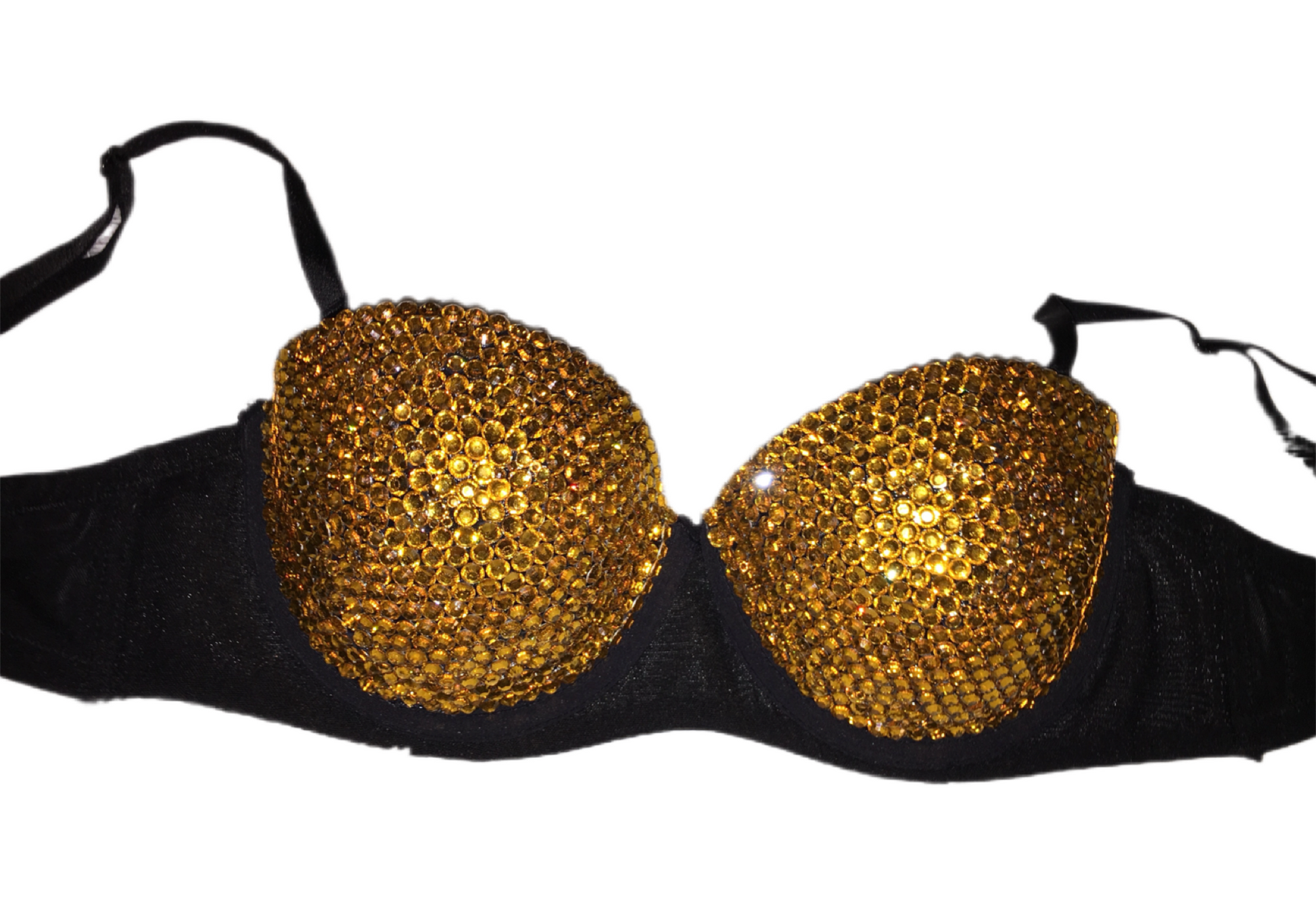 Topaz Gold Crystal Rhinestone Strapless Bra In Black