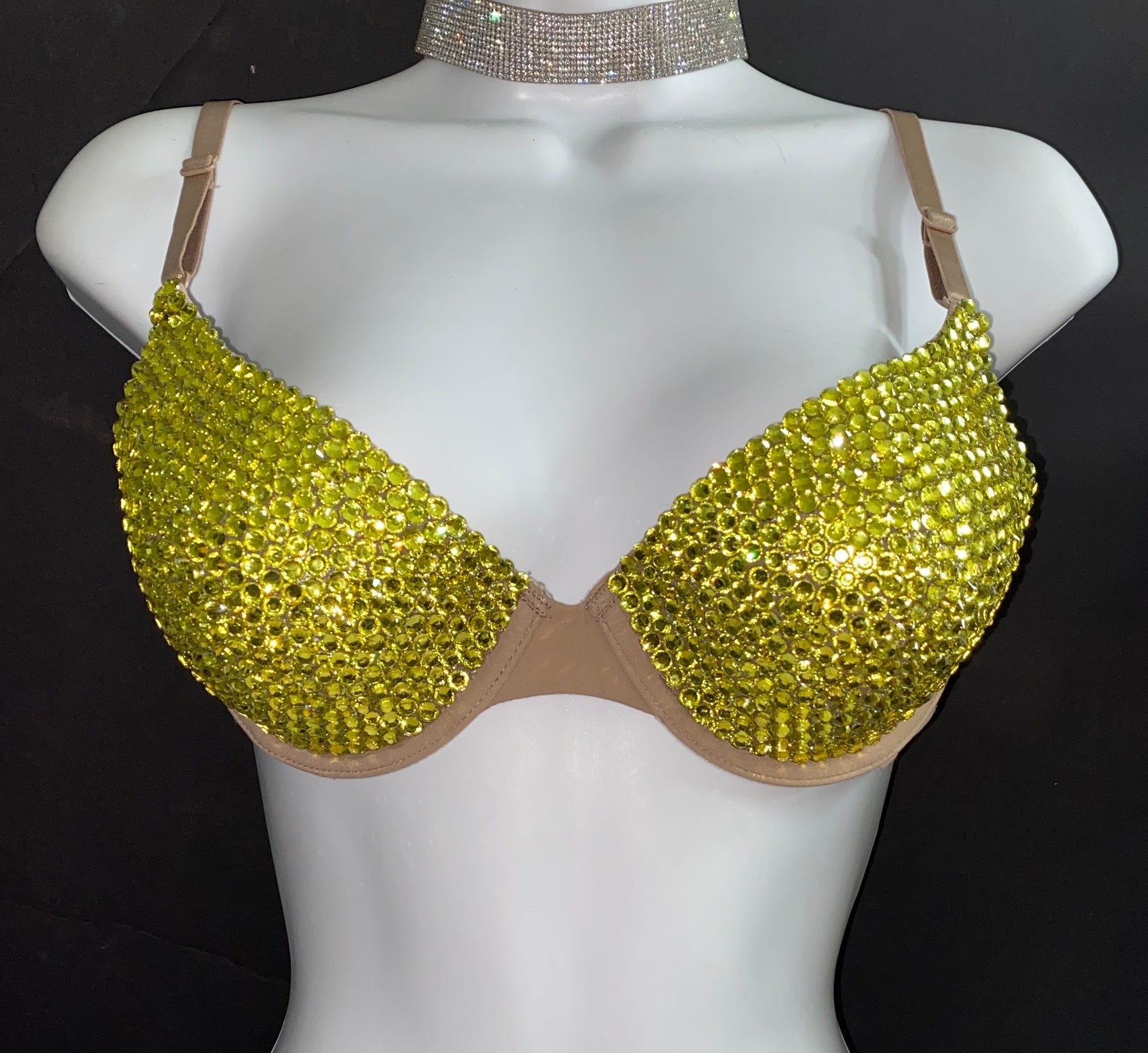 Yellow Crystal Rhinestone T-Shirt Bra In Nude